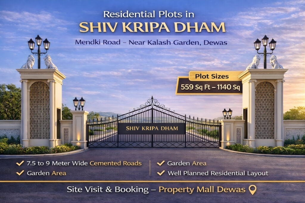 Shiv Kripa Dham Dewas is a well-planned residential plotting project located on Mendki Road near Kalash Garden, offering an excellent opportunity for both residential living and long-term property investment. With rapid development and improving connectivity in this area, Mendki Road is emerging as one of the fastest-growing residential zones in Dewas.
